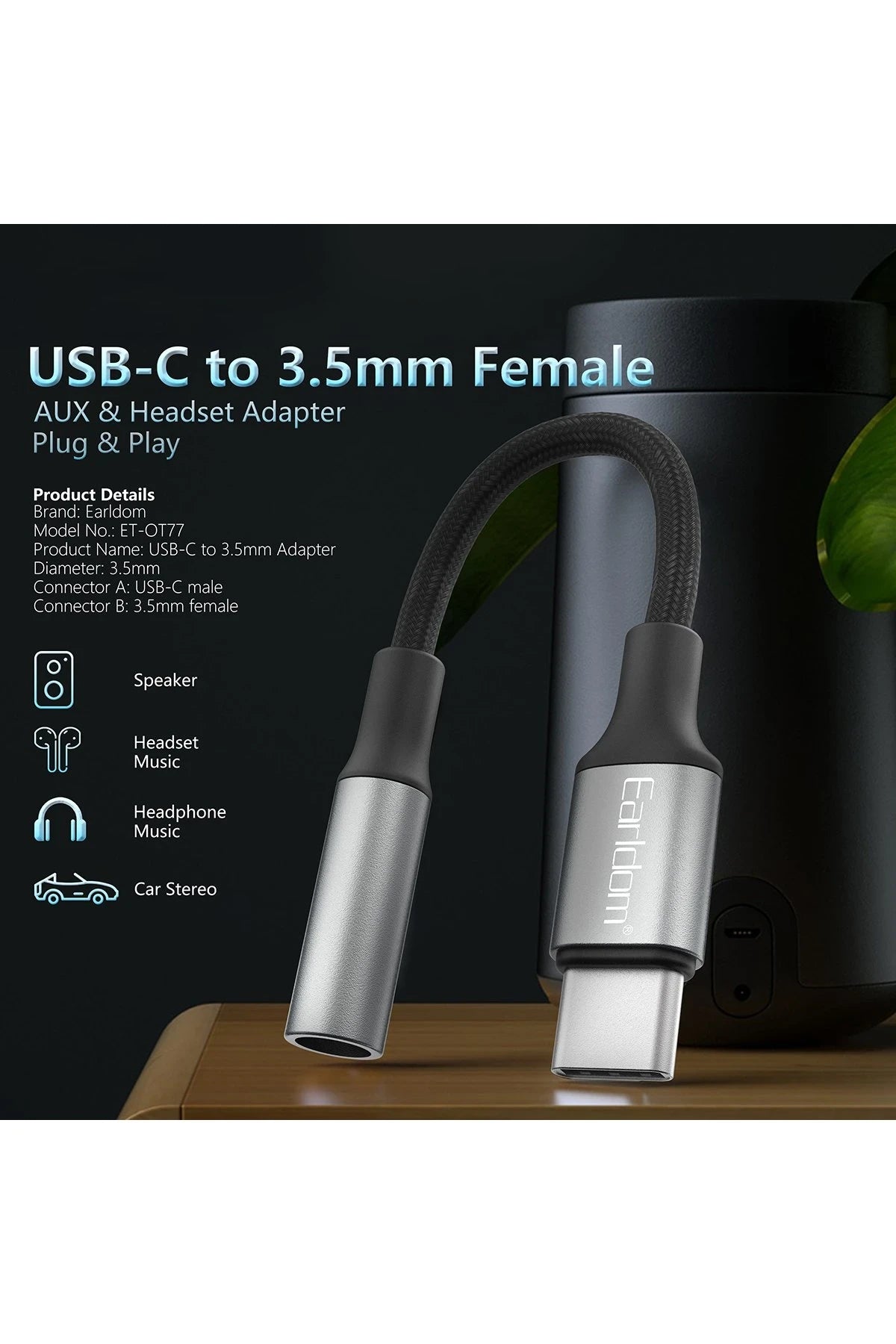 Earldom OT77 Tak Çalıştır Type-C to Aux Dönüştürücü