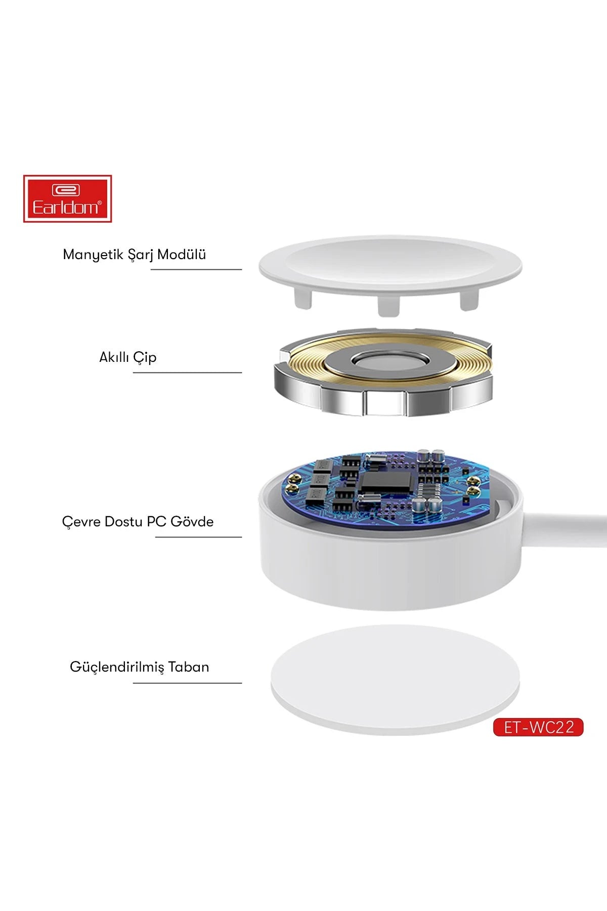 Uyumluluk: Apple Watch Series 1'den başlayarak tüm Apple Watch modelleriyle uyumlu olan Earldom WC22, saatinizi hızlı ve güvenli bir şekilde şarj etmeniz için tasarlanmıştır.