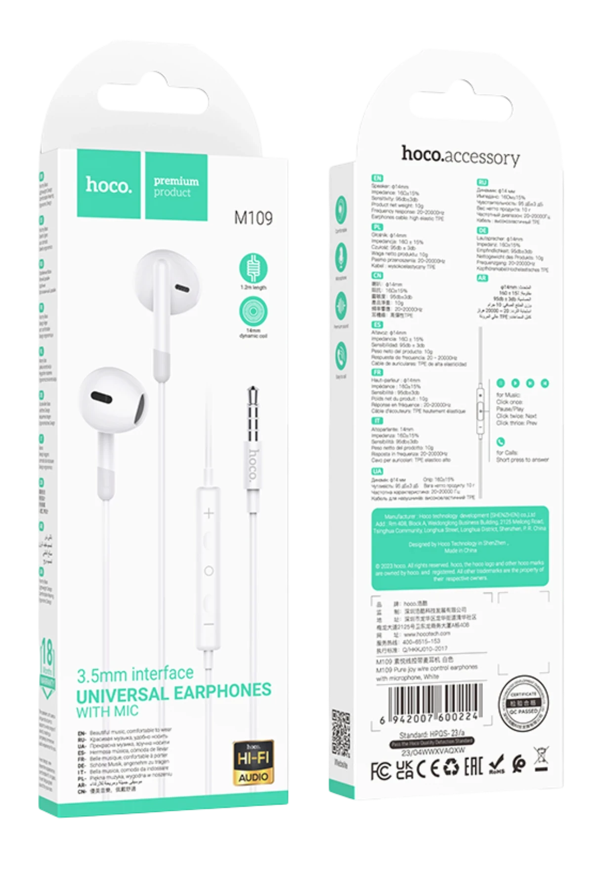 Hoco. M109 kablolu kulaklık, yüksek ses kalitesi ve rahat tasarımıyla günlük kullanım, müzik dinleme ve telefon görüşmeleri için ideal bir seçim sunar. 3.5mm jack girişi sayesinde geniş cihaz uyumluluğu sağlar, entegre mikrofonu ile kesintisiz iletişim imkanı tanır.