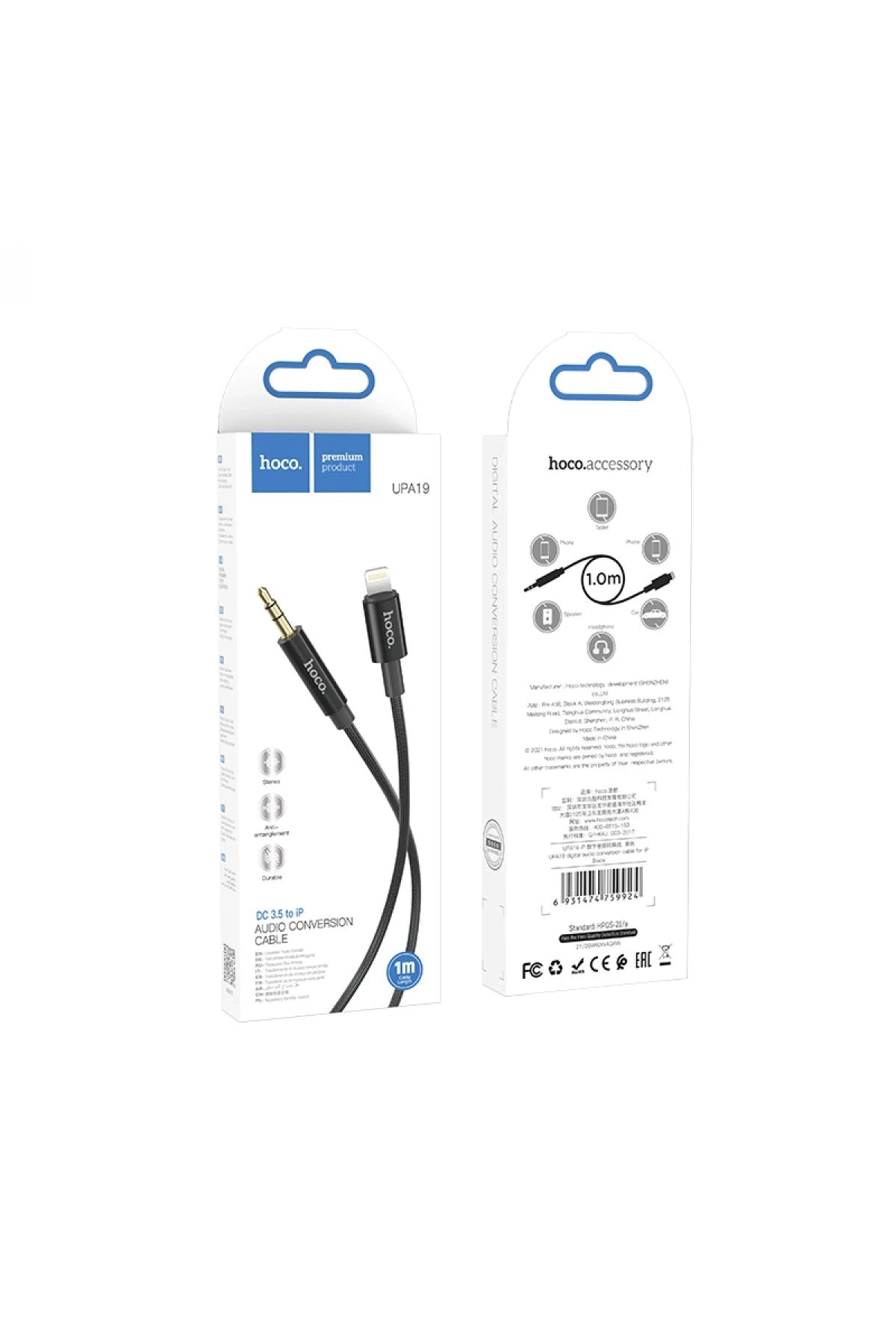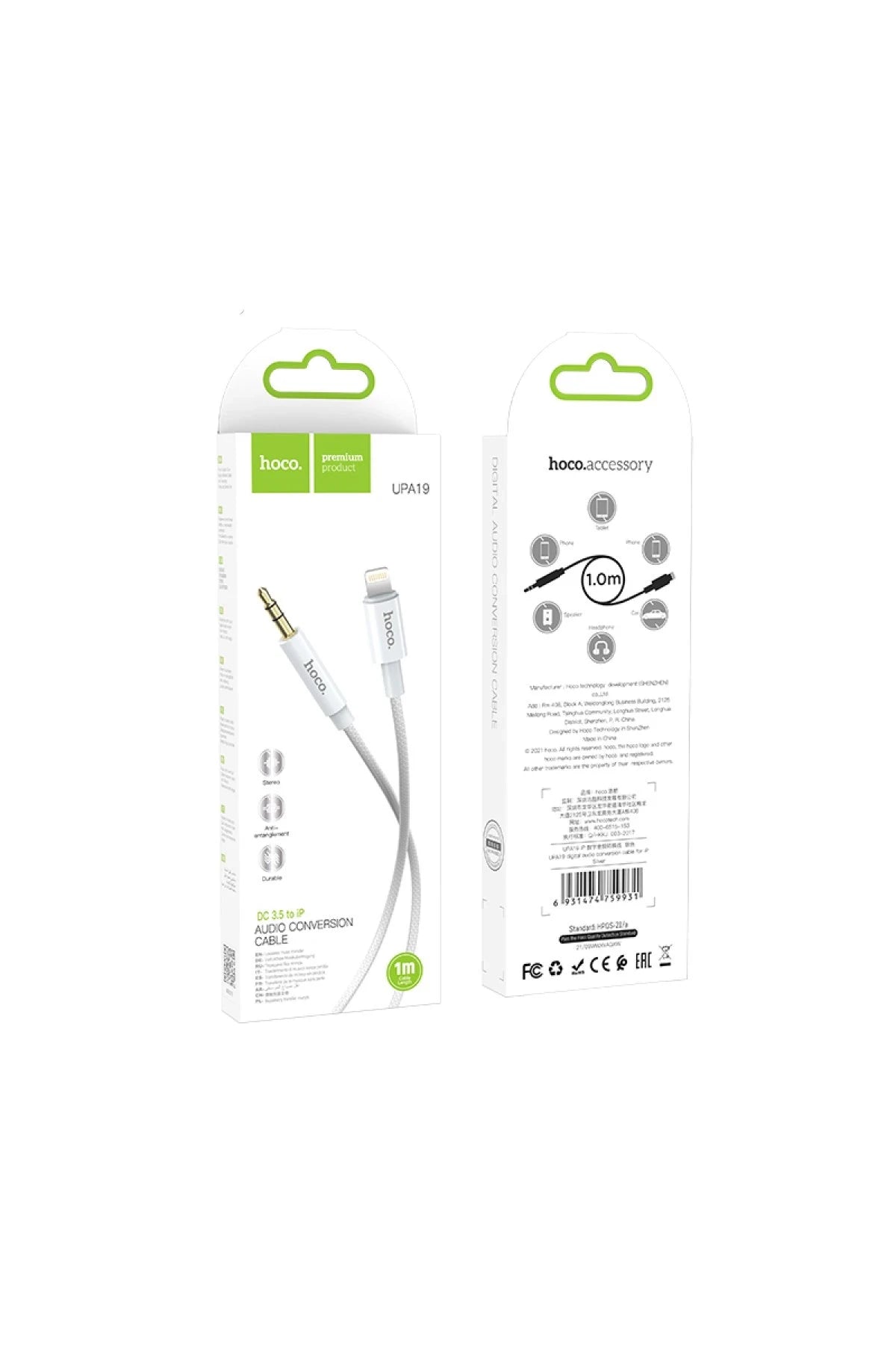 Hoco. UPA19 1M Hasırlı Lightning to Aux Kablo