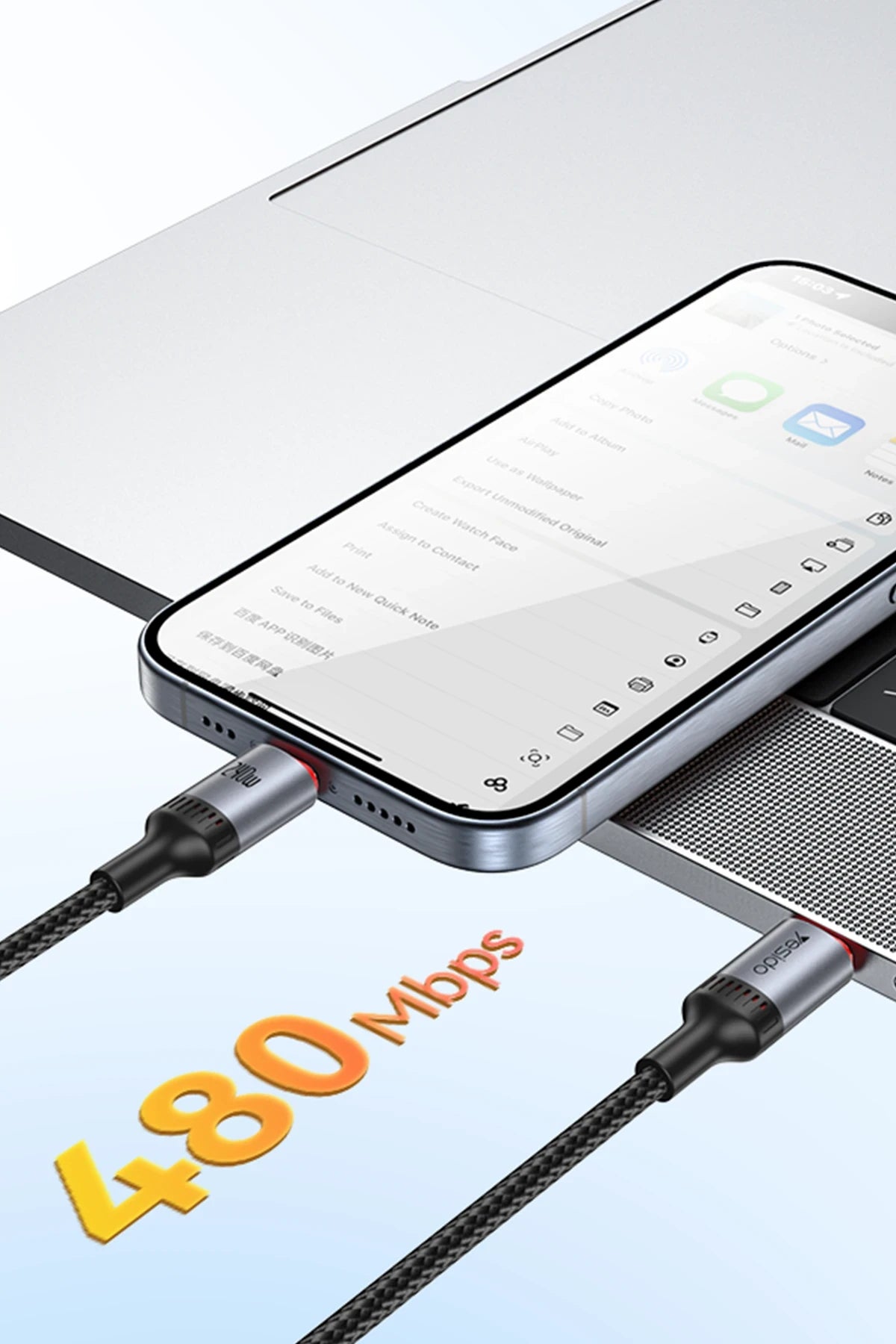 Sadece şarj değil – 480 Mbps veri transfer hızı sayesinde dosyalarınızı hızlıca taşıyabilir, büyük veri işlemlerinde zaman kaybetmeden sonuç alabilirsiniz.
